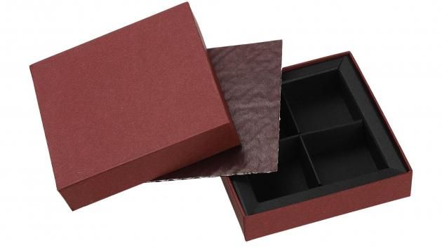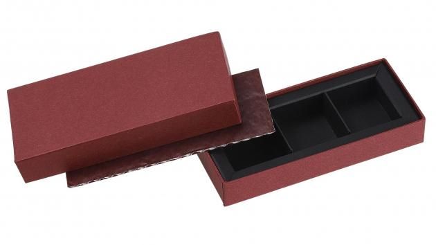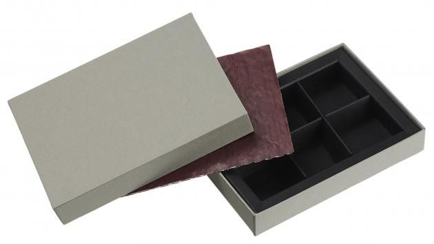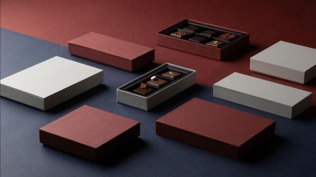 販売期間:11月〜3月限定 品番:1733(3仕切)/1734(4仕切)/1736(6仕切) 用途:トリュフ・プラリネ・プチショコラ用 内寸(mm):1733:107×35×17 / 1734:71×71×17 / 1736:107×71×17  角が際立つ薄型スクエアデザイン。薄型(仕切り高さ17mm)に最適化されており、トリュフやプラリネの見栄えを損なわずスマートに収まります。グレー/ボルドーの落ち着いた色味が大人の贈り物にぴったり。 カラーバリエーション:ボルドー・グレー