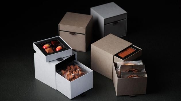 販売期間:11月〜3月限定 品番:1320(2段引き出しタイプ) 用途:トリュフ・プラリネ・生チョコ・焼菓子・小物ギフト用(上段/下段で使い分け可) 内寸(mm):上段 66x66x20 下段 92x92x67 説明文: 開ける楽しみがある2段引き出しタイプのギフトボックス。上段・下段を分けて、トリュフと小物菓子などをセットできます。贈り物に高級感を出したい時に最適で、箔押しやリボンでブランド仕様にカスタム可能。 カラーバリエーション:ウォームグレー・クールグレー